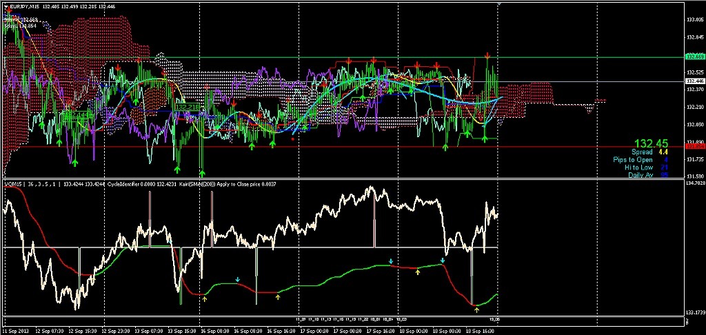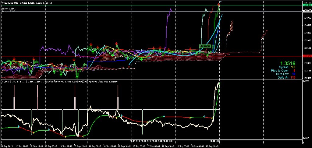 2013/09/19 - けろけろさんの株式ブログ。タイトル:「FX 2013-09-19 15分足」 本文:昨日までの動き左から (チャートの時間は7時間程度遅れてます)--ユーロドル-- --ユーロ・円--