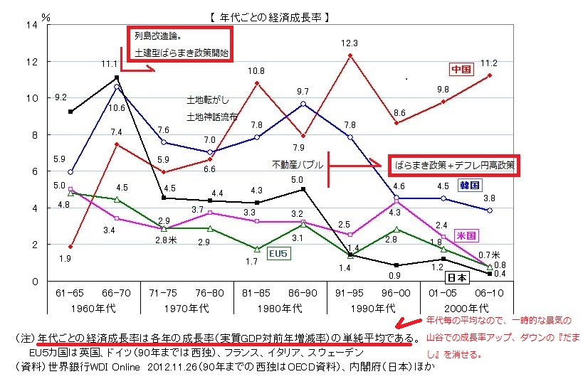 (添付図1: 各国成長率の比較。1975以降の日本の凋落ぶりは異常)
