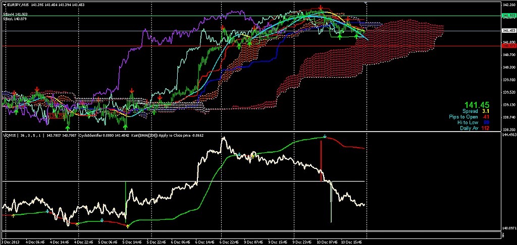2013/12/11 - けろけろさんの株式ブログ。タイトル:「FX 2013-12-11 15分足」 本文:昨日までの動き左から (チャートの時間は7時間程度遅れてます)--ユーロドル-- --ユーロ・円--