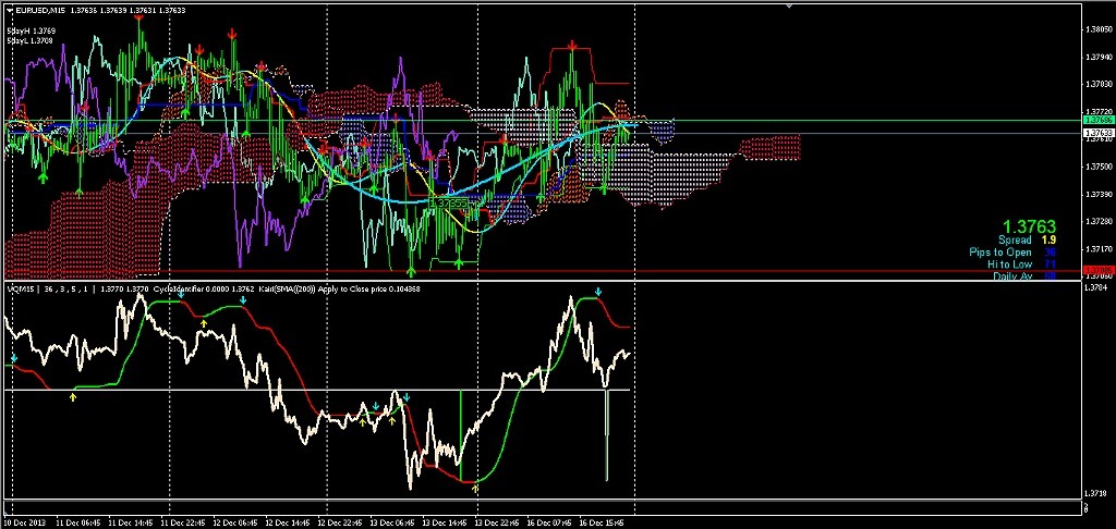 2013/12/17 - けろけろさんの株式ブログ。タイトル:「FX 2013-12-17 15分足」 本文:昨日までの動き左から (チャートの時間は7時間程度遅れてます)--ユーロドル-- --ユーロ・円--