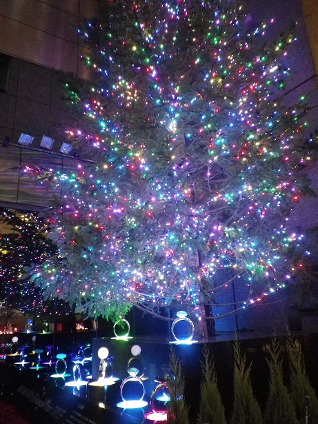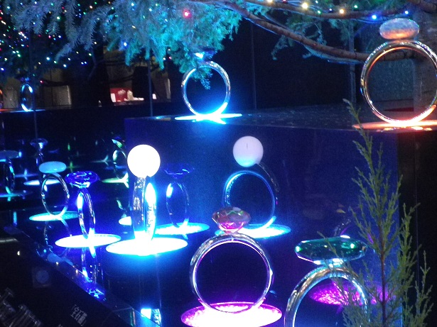 ミキモトのツリーとその下の巨大指輪です。写真を撮ってる人が大勢いました。