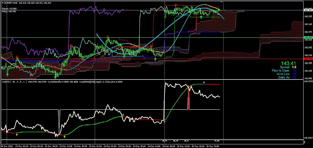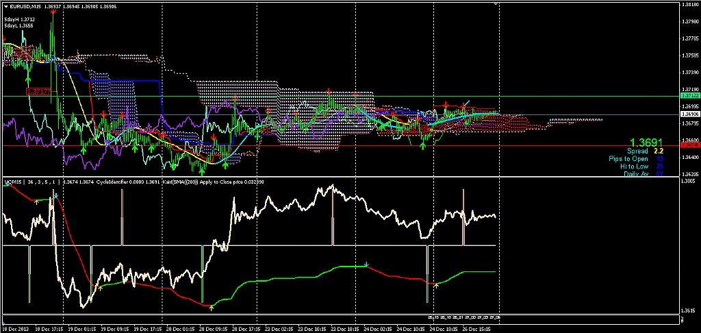 2013/12/27 - けろけろさんの株式ブログ。タイトル:「FX 2013-12-27 15分足」 本文:昨日までの動き左から (チャートの時間は7時間程度遅れてます)--ユーロドル-- --ユーロ・円--