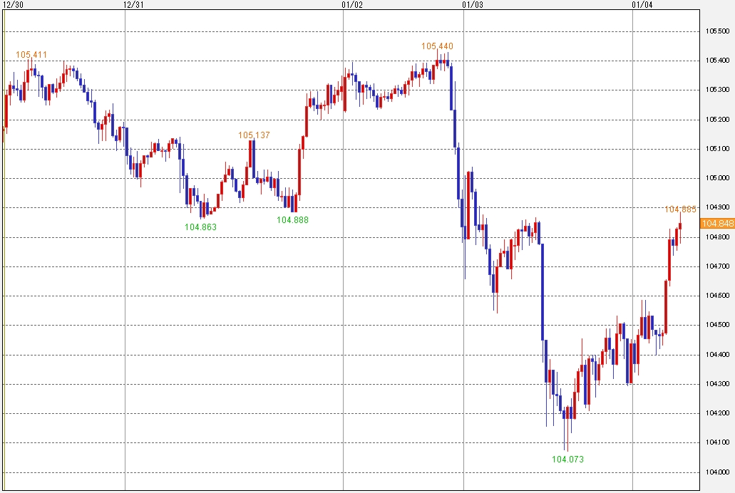12月30日~1月3日の週。ドル円相場は1ドル=104.07~105.44円