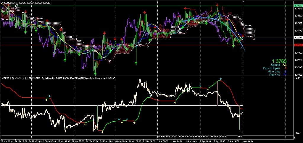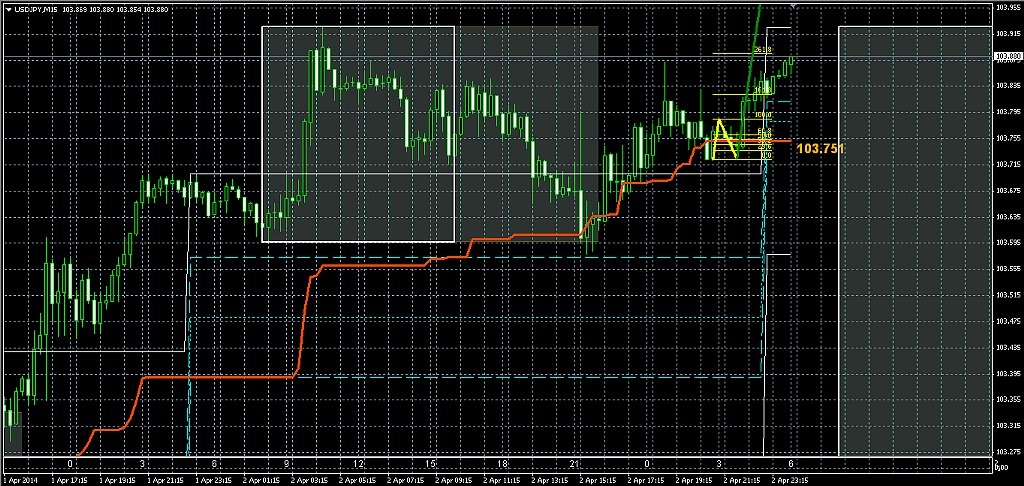 2014/04/03 - けろけろさんの株式ブログ。タイトル:「2014-04-03 15分足」 本文:昨日までの動き左から (チャートの時間は7時間程度遅れてます)--ユーロドル-- --ユーロ・円--