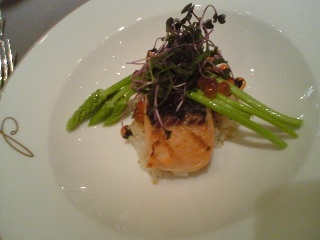 2008/05/26 - COTOSSAさんの株式ブログ。タイトル:「ウエディングのお魚料理☆」 本文:お魚はサーモンベースです。 上に乗っている緑の野菜。初めて見る食べ物です。 食べてみるとちょっとねばねば感。ますます何の植物?!ということで、ホテルの人に聞いた所、シェフに確認に・・・