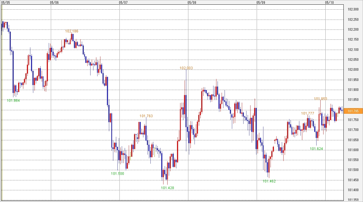 5月5日~5月9日の週。ドル円相場は1ドル=101.42~102.24円