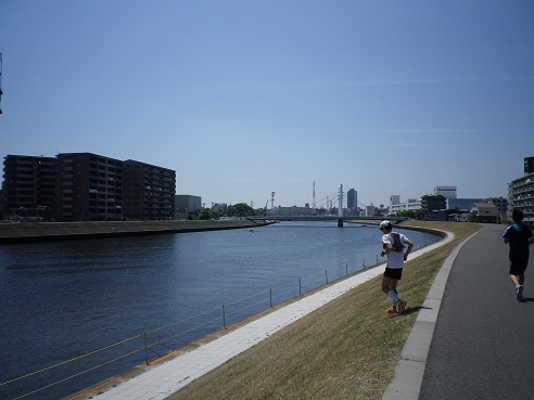 ↑途中から鶴見川を下る。カヌーを練習しているようです