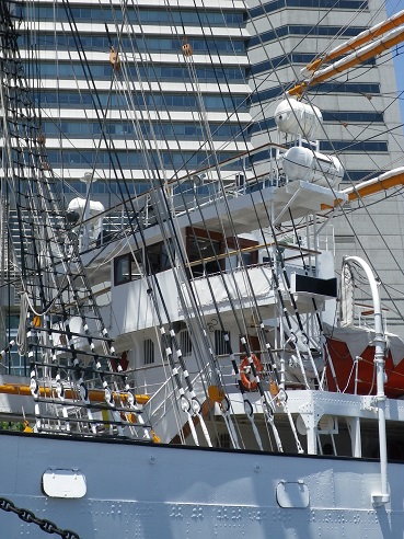 ↑同じく日本丸。右と中央のバックのビルはランドマークタワーです