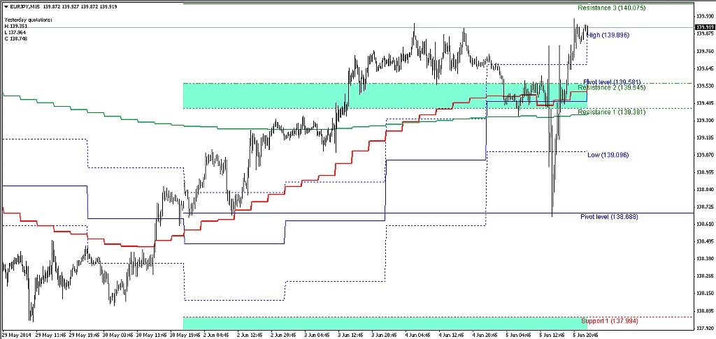 2014/06/06 - けろけろさんの株式ブログ。タイトル:「2014-06-06 15分足」 本文:昨日までの動き左から (チャートの時間は7時間程度遅れてます)--ユーロドル-- --ユーロ・円--