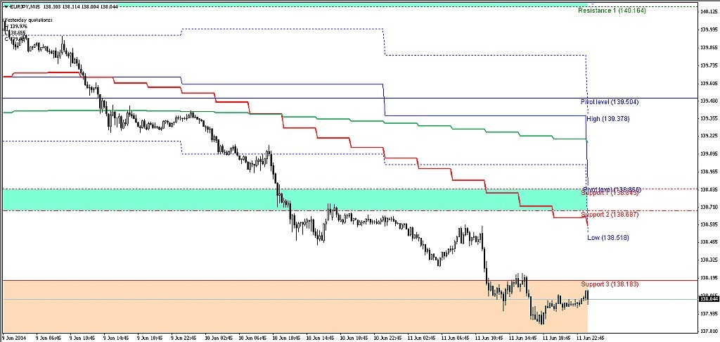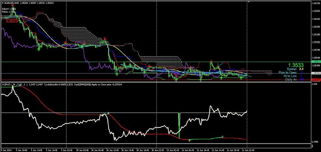2014/06/12 - けろけろさんの株式ブログ。タイトル:「2014-06-12 15分足」 本文:昨日までの動き左から (チャートの時間は7時間程度遅れてます)--ユーロドル-- --ユーロ・円--