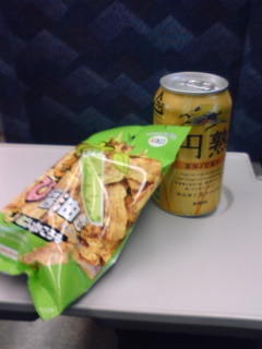 おかげさまで無事帰宅でござる。出張帰りのお伴はやはりこれ。特にわさび味のおつまみは拙者の定番。(^^)