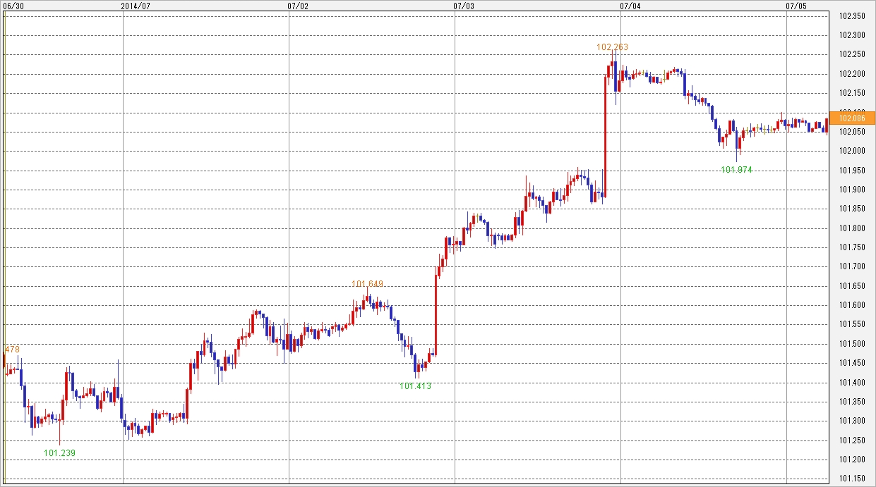 6月30日~7月4日の週。ドル円相場は1ドル=101.23~102.26円