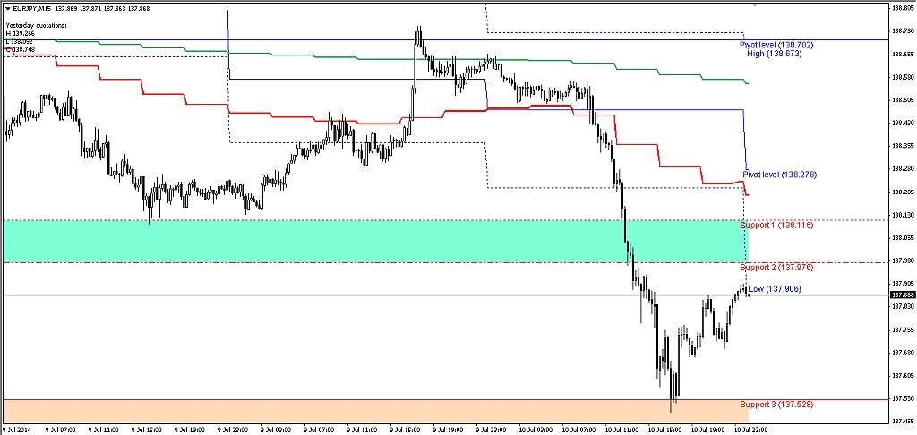 2014/07/11 - けろけろさんの株式ブログ。タイトル:「2014-07-11 15分足」 本文:昨日までの動き左から (チャートの時間は7時間程度遅れてます)--ユーロドル-- --ユーロ・円--
