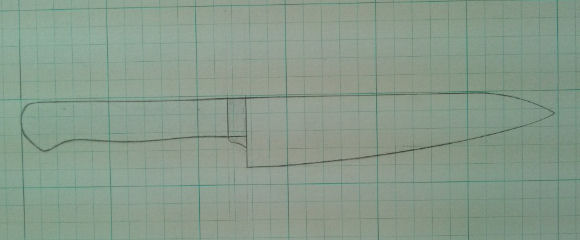 包丁(牛刀)にする予定で、先ほど型紙を画き終えました。