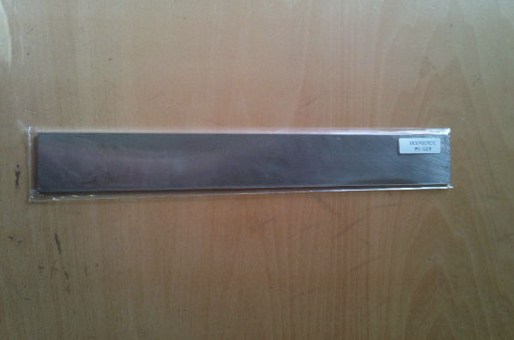 写真は、包丁用の鋼材(ATS-34)と包丁(牛刀)の型紙です。