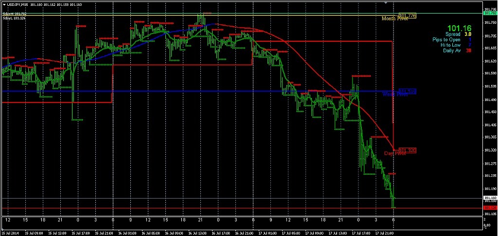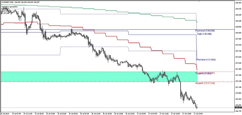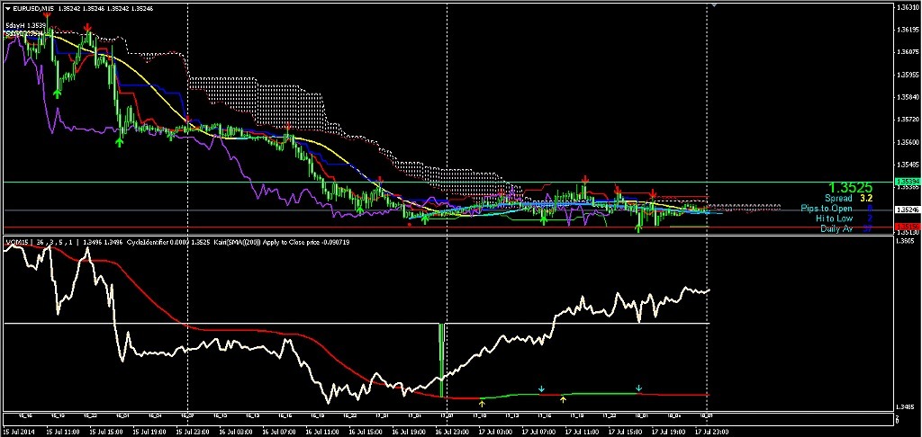 2014/07/18 - けろけろさんの株式ブログ。タイトル:「2014-07-18 15分足」 本文:昨日までの動き左から (チャートの時間は7時間程度遅れてます)--ユーロドル-- --ユーロ・円--