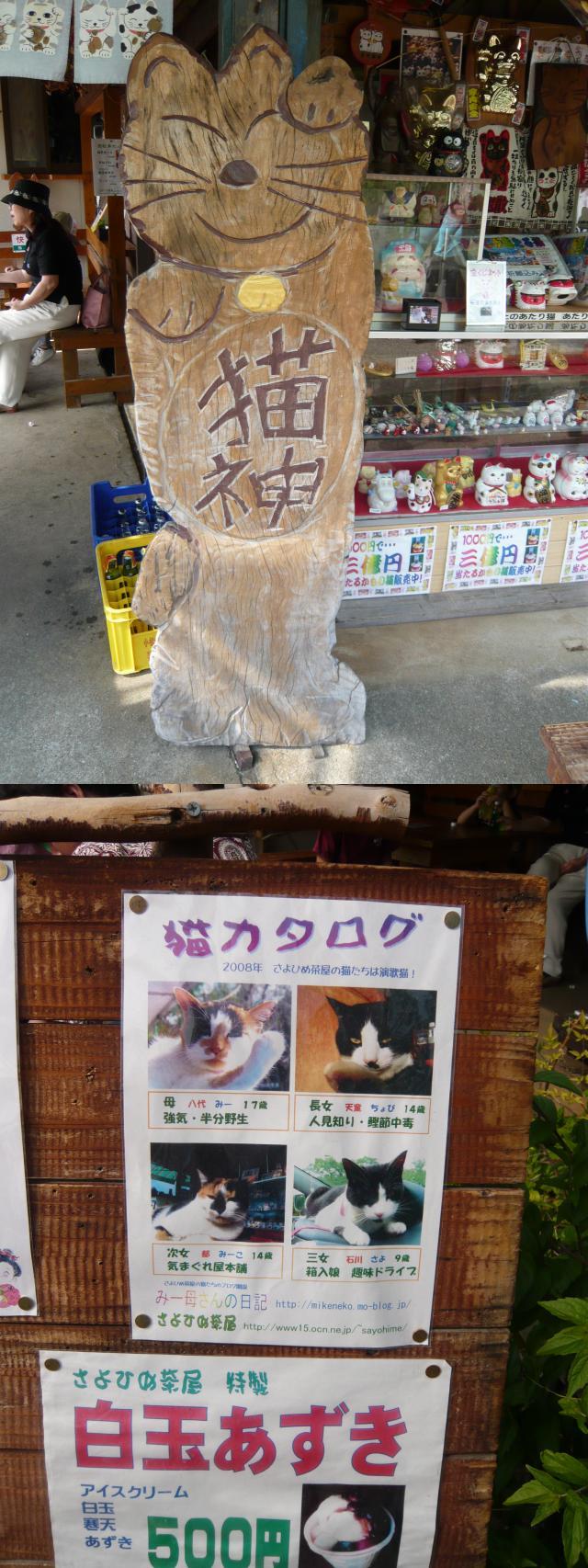 このさよひめ茶屋さんは、最近流行のネコカフェでもあるんですね(笑)っと言う訳で看板も猫(写真中央上)だし、看板猫の紹介(写真中央下)なんかもありました(^^)