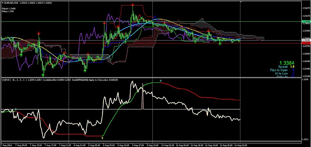 2014/08/12 - けろけろさんの株式ブログ。タイトル:「2014-08-12 15分足」 本文:昨日までの動き左から (チャートの時間は7時間程度遅れてます)--ユーロドル-- --ユーロ・円--