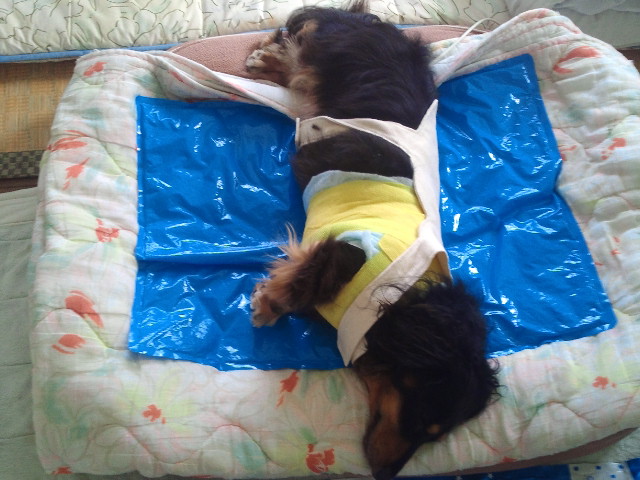 この暑い夏に、クゥタは包帯で、ぐるぐる巻きです。