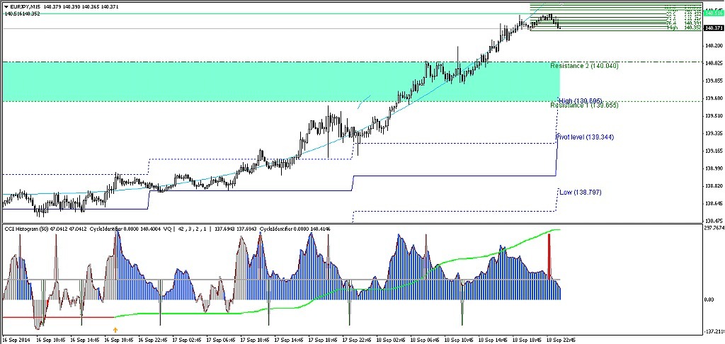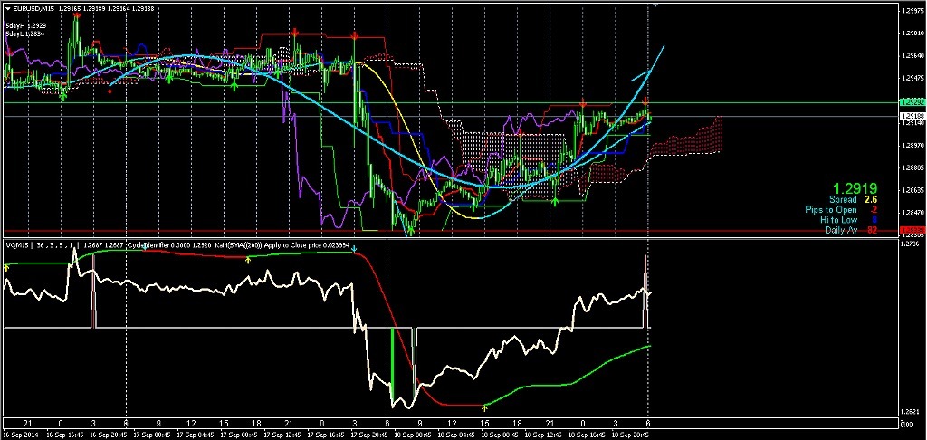 2014/09/19 - けろけろさんの株式ブログ。タイトル:「2014-09-19 15分足」 本文:昨日までの動き左から (チャートの時間は7時間程度遅れてます)--ユーロドル-- --ユーロ・円--