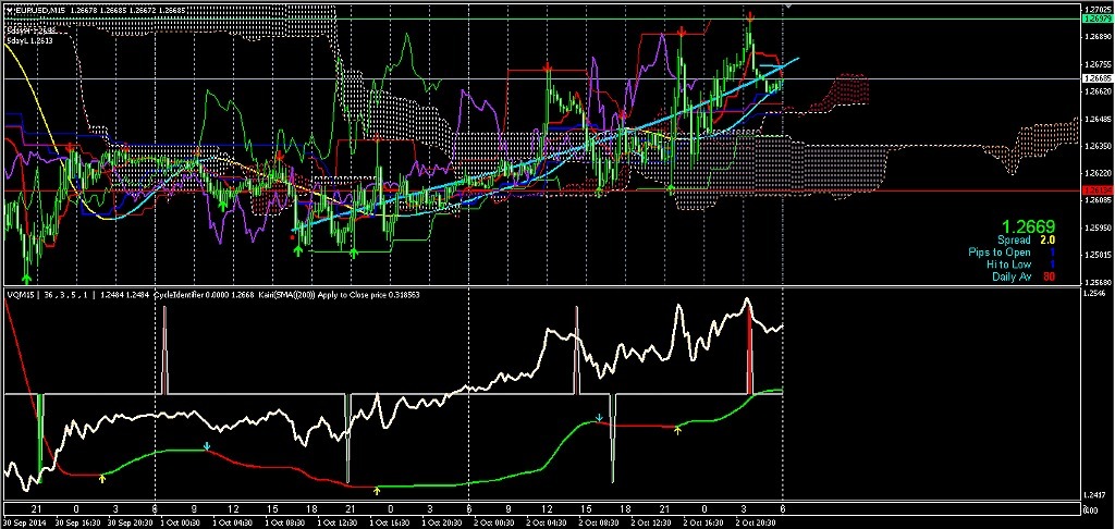 2014/10/03 - けろけろさんの株式ブログ。タイトル:「2014-10-03 15分足」 本文:昨日までの動き左から (チャートの時間は7時間程度遅れてます)--ユーロドル-- --ユーロ・円--