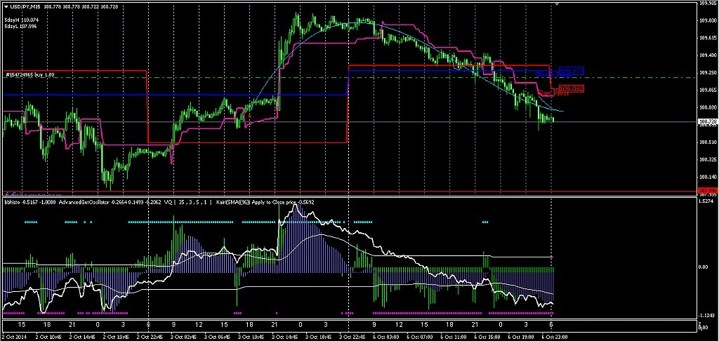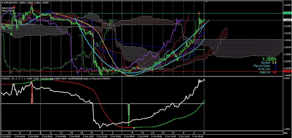 2014/10/07 - けろけろさんの株式ブログ。タイトル:「2014-10-07 15分足」 本文:昨日までの動き左から (チャートの時間は7時間程度遅れてます)--ユーロドル-- --ユーロ・円--