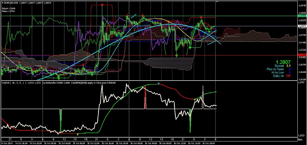 2014/10/17 - けろけろさんの株式ブログ。タイトル:「2014-10-17 15分足 写真訂正」 本文:昨日までの動き左から (チャートの時間は7時間程度遅れてます)--ユーロドル-- --ユーロ・円--