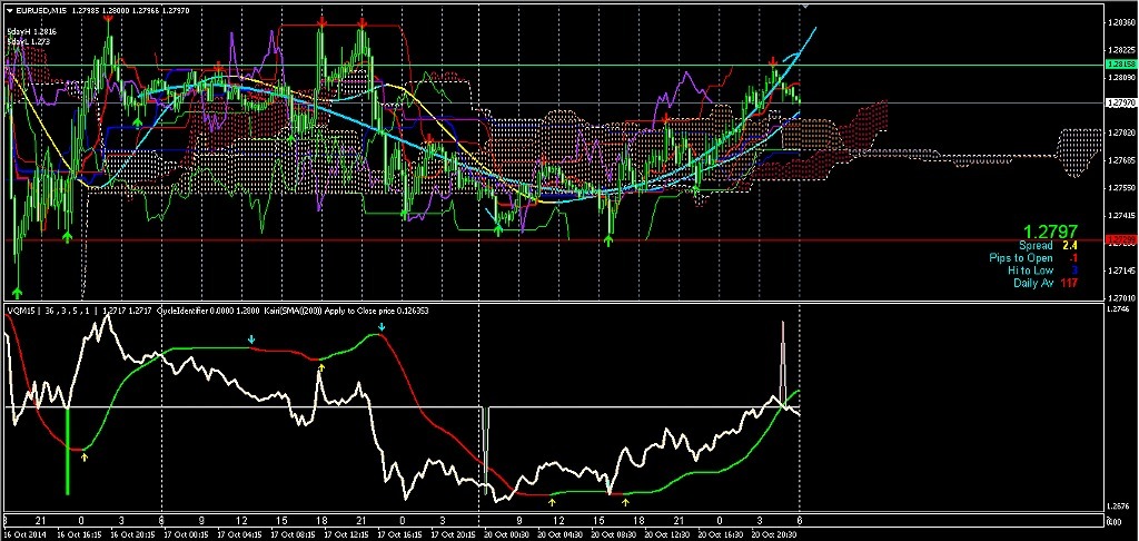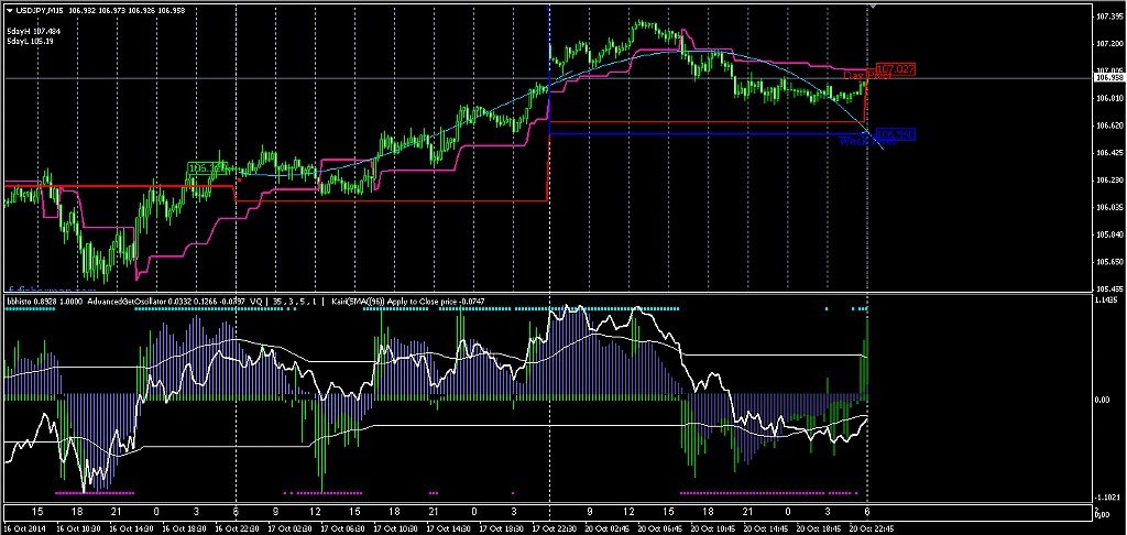 2014/10/21 - けろけろさんの株式ブログ。タイトル:「2014-10-21 15分足」 本文:昨日までの動き左から (チャートの時間は7時間程度遅れてます)--ユーロドル-- --ユーロ・円--