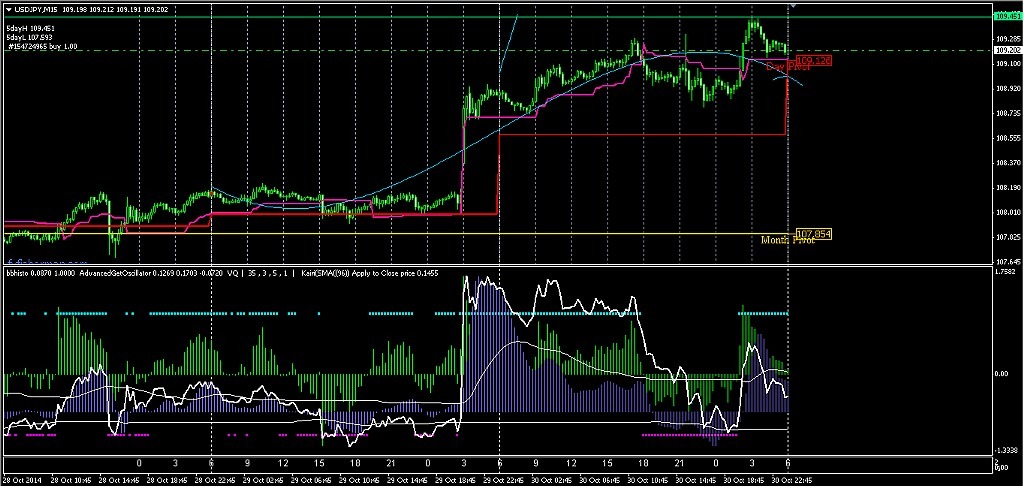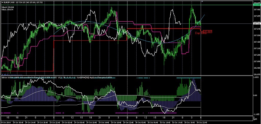 2014/10/31 - けろけろさんの株式ブログ。タイトル:「2014-10-31 15分あし」 本文:昨日までの動き左から (チャートの時間は7時間程度遅れてます)--ユーロドル-- --ユーロ・円--