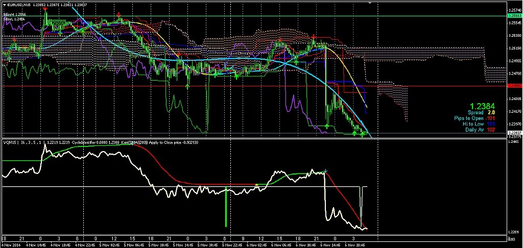 2014/11/07 - けろけろさんの株式ブログ。タイトル:「2014-11-07 15分足」 本文:昨日までの動き左から (チャートの時間は7時間程度遅れてます)--ユーロドル-- --ユーロ・円--