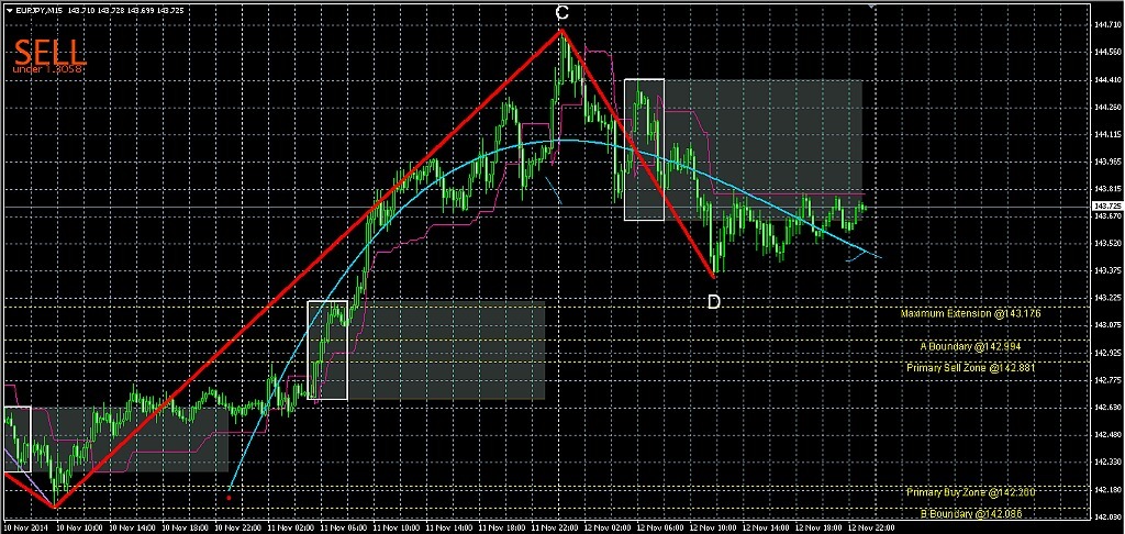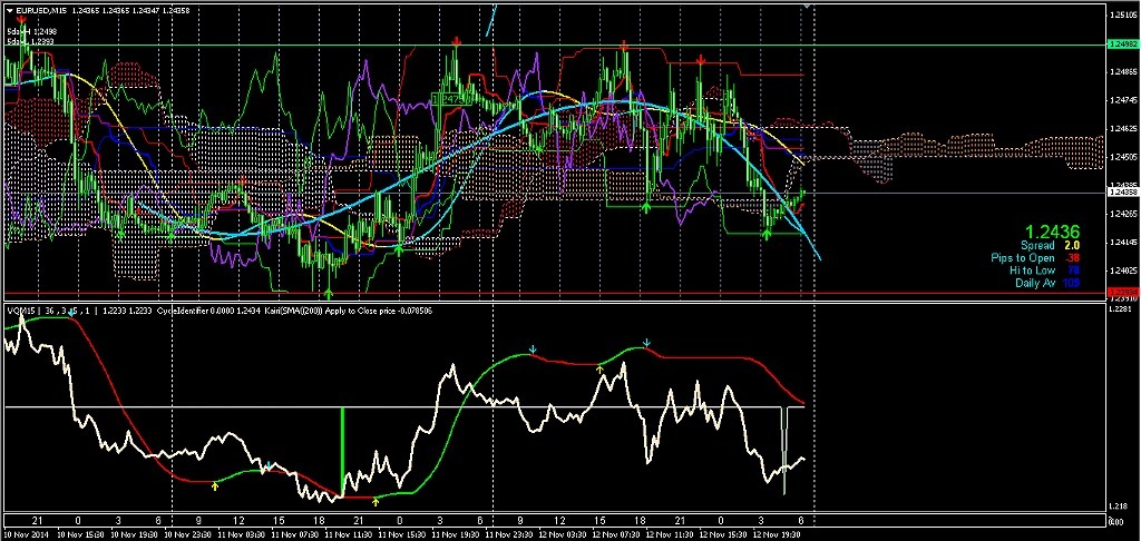 2014/11/13 - けろけろさんの株式ブログ。タイトル:「2014-11-13 15分足」 本文:昨日までの動き左から (チャートの時間は7時間程度遅れてます)--ユーロドル-- --ユーロ・円--