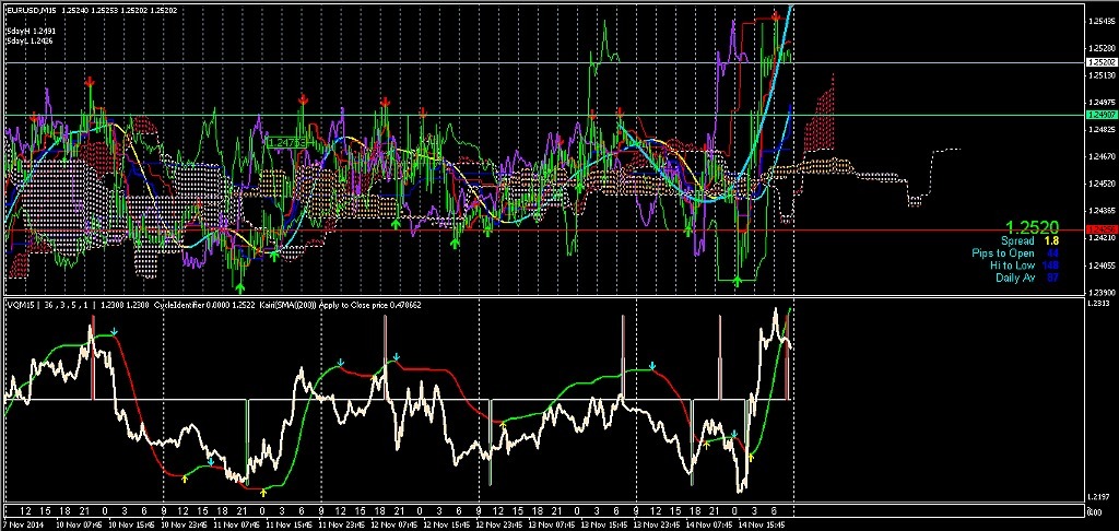 2014/11/17 - けろけろさんの株式ブログ。タイトル:「2014-11-17 15分足」 本文:昨日までの動き左から (チャートの時間は7時間程度遅れてます)--ユーロドル-- --ユーロ・円--