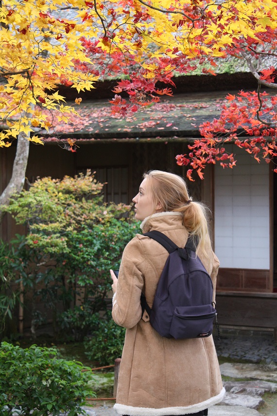 金髪美女のエリーちゃんと一緒に大河内山荘の紅葉を愛でる至福の時