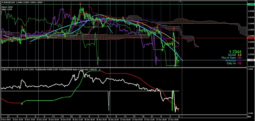 2014/12/18 - けろけろさんの株式ブログ。タイトル:「2014-12-18 15分足」 本文:昨日までの動き左から (チャートの時間は7時間程度遅れてます)--ユーロドル-- --ユーロ・円--