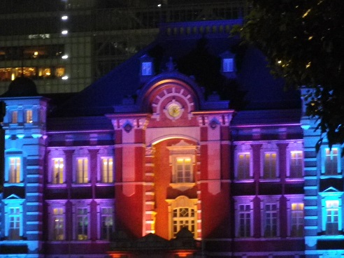 ライトアップされた駅舎です。もっといろいろ撮りたかったけど、警備スタッフの人が「立ち止まらない下さい」とやたらにせかすもんで、マトモに撮れていません(半分は言い訳)。後ろを見ても誰もいないのになあ・・・