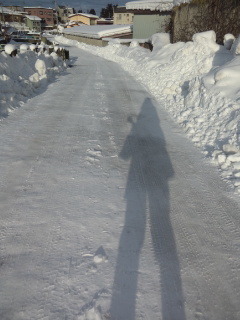 祖母のいる介護施設に行く途中の歩道が、降り積もった雪で人一人通るのがやっとの道幅に狭まっていました。