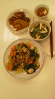 今度作ったあんかけかた焼きそばと大根と手羽先の豆板醤煮です