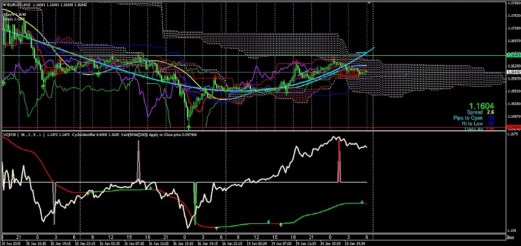 2015/01/20 - けろけろさんの株式ブログ。タイトル:「2015-01-20 15分足」 本文:昨日までの動き左から (チャートの時間は7時間程度遅れてます)--ユーロドル-- --ユーロ・円--