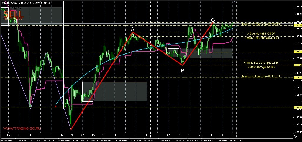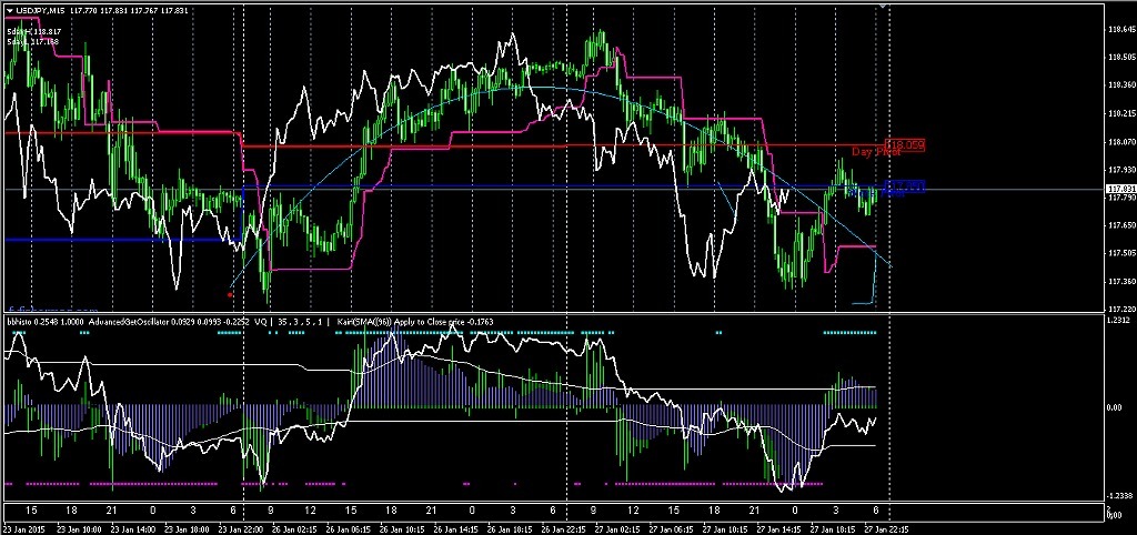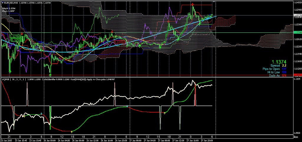 2015/01/28 - けろけろさんの株式ブログ。タイトル:「2015-01-27 15分足」 本文:昨日までの動き左から (チャートの時間は7時間程度遅れてます)--ユーロドル-- --ユーロ・円--