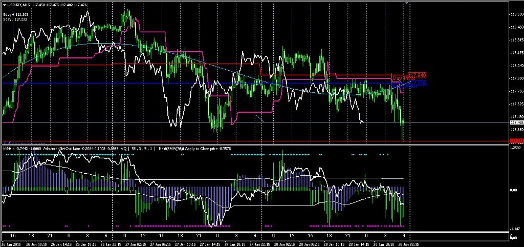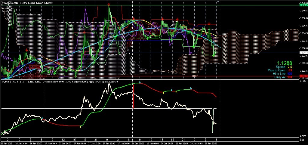 2015/01/29 - けろけろさんの株式ブログ。タイトル:「2015-01-29 15分足」 本文:昨日までの動き左から (チャートの時間は7時間程度遅れてます)--ユーロドル-- --ユーロ・円--