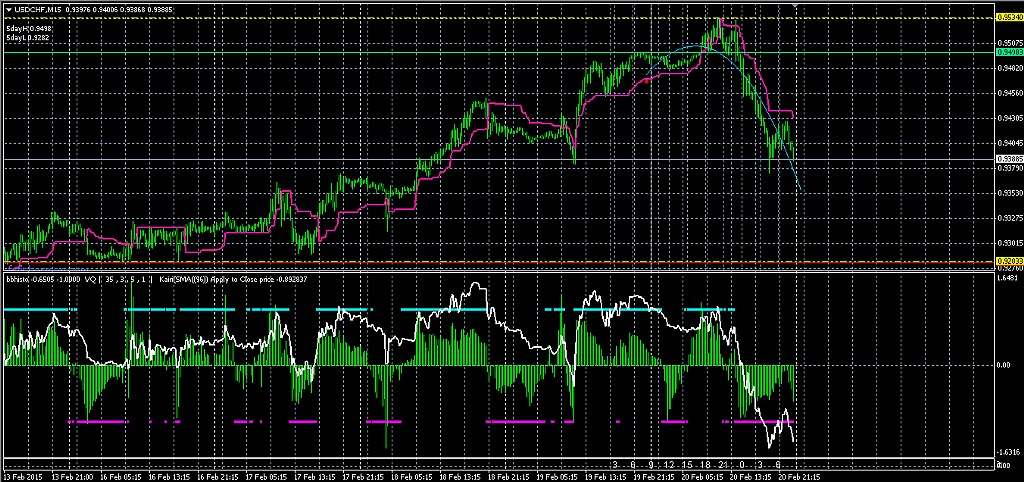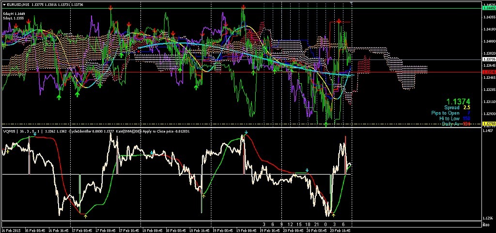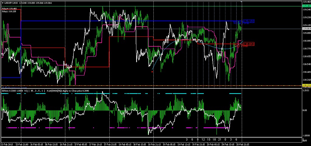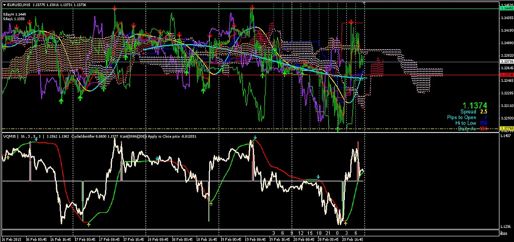 2015/02/23 - けろけろさんの株式ブログ。タイトル:「2015-02-23 15分足」 本文:  昨日までの動き左から (チャートの時間は7時間程度遅れてます)--ユーロドル-- --ユーロ・円--