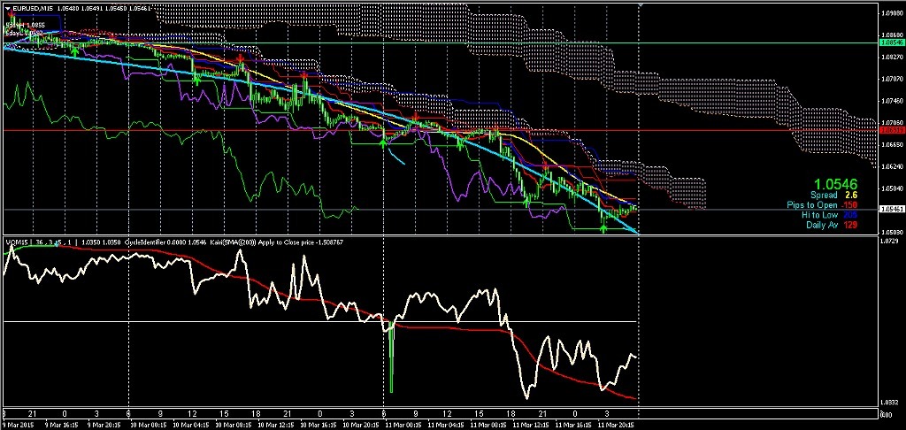 2015/03/12 - けろけろさんの株式ブログ。タイトル:「2015-03-12 15分足」 本文:  昨日までの動き左から (チャートの時間は7時間程度遅れてます)--ユーロドル-- --ユーロ・円--