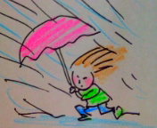 ↑の、ユリさんが傘を持ったまま、強風にあおられて~