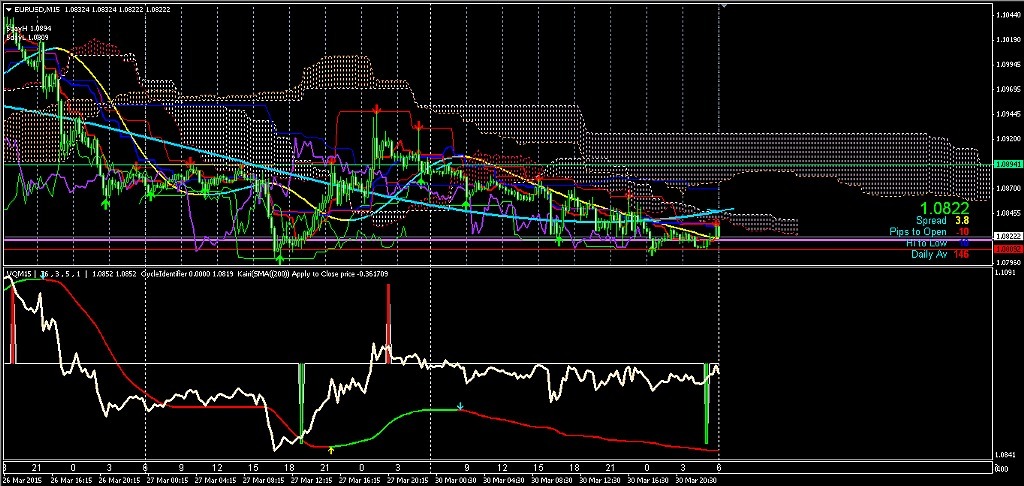 2015/03/31 - けろけろさんの株式ブログ。タイトル:「2015-03-31 15分足」 本文:  昨日までの動き左から (チャートの時間は7時間程度遅れてます)--ユーロドル-- --ユーロ・円--