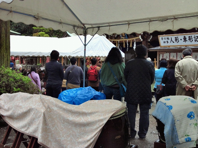 春の桜が散りつつも、神社はあめも不思議と止んで、大勢のひとで、満席でした。