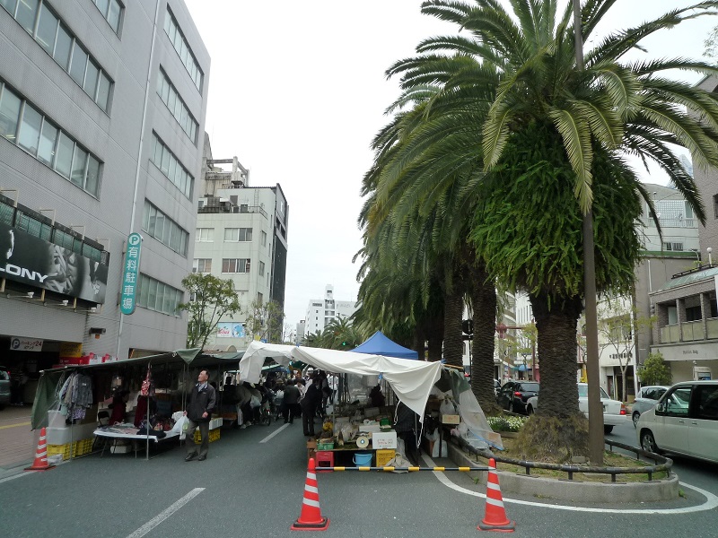 高知城大手門に続く路上で日曜日ごとに開かれる市です。