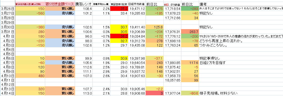 2015/04/14 - たか○さんの株式ブログ。タイトル:「データ更新」 本文:更新します。特記事項特になし。でおじゃる。