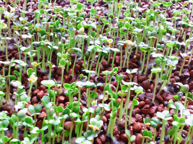 小松菜は向日性があるようですね。お日様に向かって伸びて行きます。