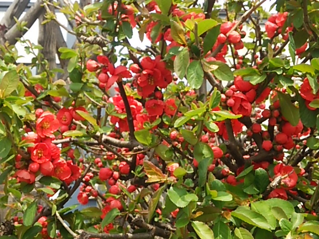 ボケと桃の花でしょうか?