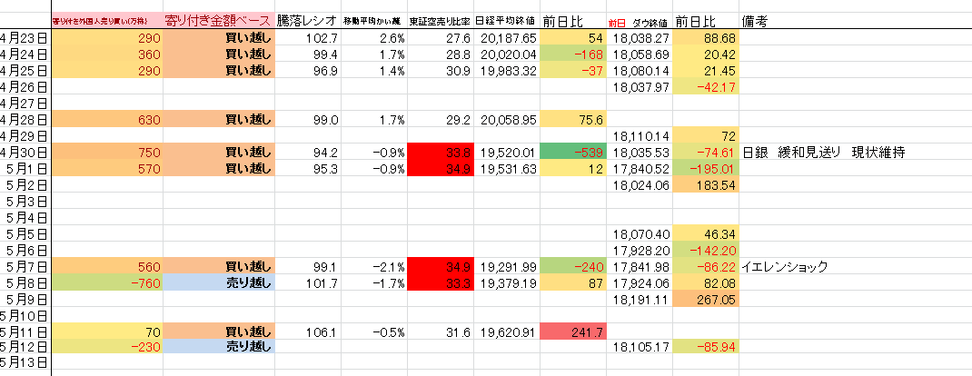 2015/05/12 - たか○さんの株式ブログ。タイトル:「データ更新」 本文:こりゃあれだね。何ともない相場って感じ。上がったり下がったりするやつだよきっと。でかい材料が出るまではね。